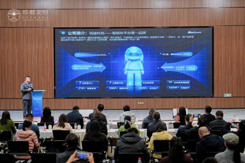 与此同时,来自数字文创场景能力供给方的企业代表也逐一登场。成都明途科技有限公司文旅产业总监晏欲恒重点推介了智能体数字人项目。成都燧石行影视科技有限公司商务总监肖肖则详细介绍了裸眼3D+AI沉浸式体验项目。