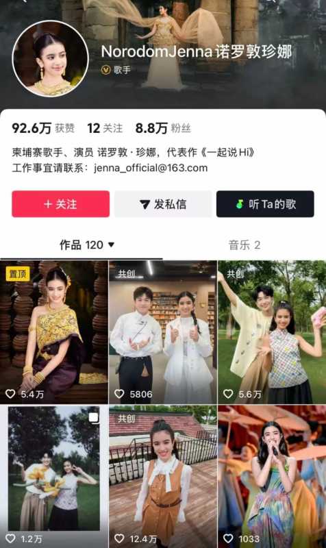 此外,西哈努克太皇的曾外孙女,年仅14岁的诺罗敦·珍娜公主也从小就对中柬友谊耳濡目染。珍娜公主还曾多次登上央视舞台,在中国多个社交平台开设个人账号,分享日常生活,推介柬埔寨旅游资源以及传统文化。