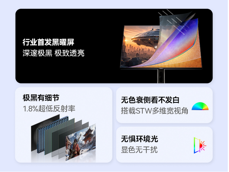 同源低反光黑曜屏,终结环境光干扰