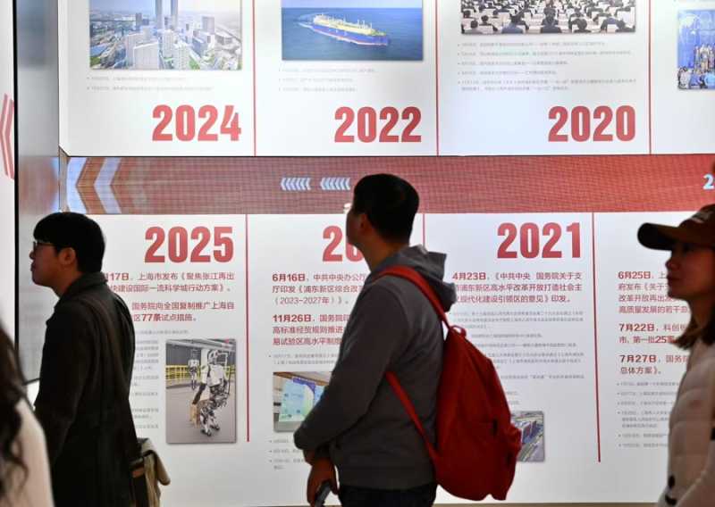 浦东开发开放主题展焕新布展后首次开放,展示了浦东在高质量发展、科技创新等方面的最新成果。展览共分八大主题展区,通过丰富的展陈形式展现了浦东的沧桑巨变和硬核实力。