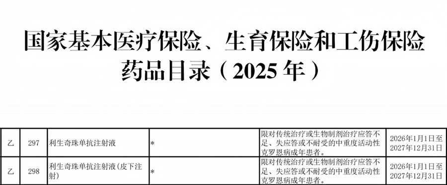 12月7日,《国家基本医疗保险、工伤保险和生育保险药品目录(2025年版)》(以下简称“医保目录”)正式公布,全球生物医药公司艾伯维旗下靶向创新药物利生奇珠单抗注射液(喜开悦®)位列其中。该药物在获批上市当年即被纳入医保,充分体现了其临床价值与国家医保政策对创新疗法的支持力度。