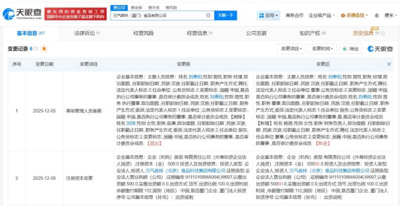 元气森林(厦门)食品有限公司注册资本由500万人民币增至5亿人民币,增幅达9900%。这家公司的变更背后有何玄机?让我们一探究竟。