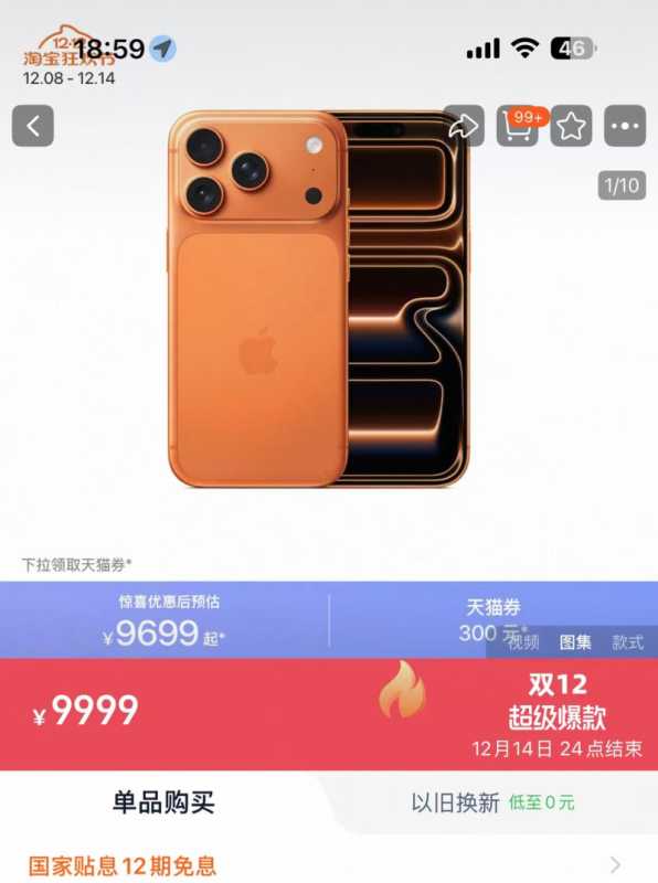 12月8日,苹果在电商平台启动年末促销,iPhone 17 Pro与17 Pro Max两款机型罕见在上市仅两个月后就迎来官方下调:领取300元优惠券后,起售价分别降至8699元和9699元。此次活动持续时间为12月8日至12月14日。