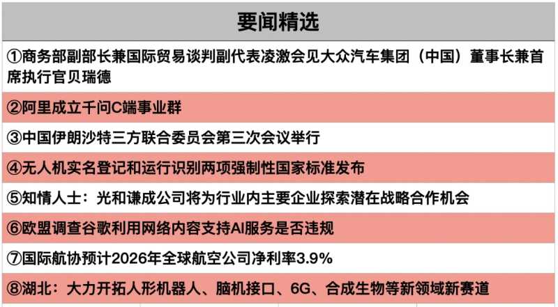 美股三大指数收盘涨跌不一,贵金属板块涨幅居前;外交部发言人回应欧洲稀土供应担忧;我国明年起禁止生产含汞体温计和含汞血压计产品。