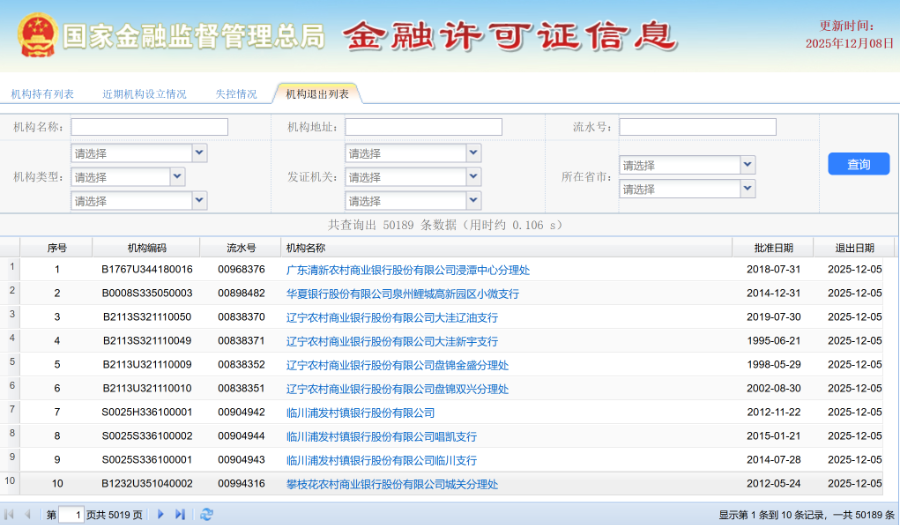 根据国家金融监管总局的数据显示,今年以来已有9661家银行网点获批退出,仅四季度伊始,就有1580家银行网点获批退出,较上年同期多增511家。