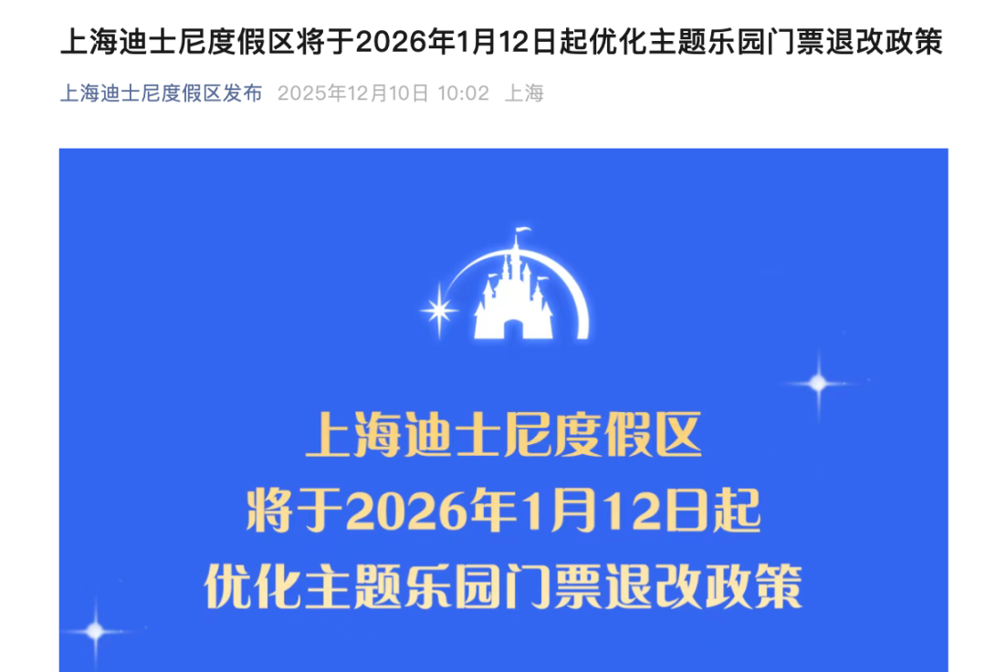 上海迪士尼乐园门票退改政策优化