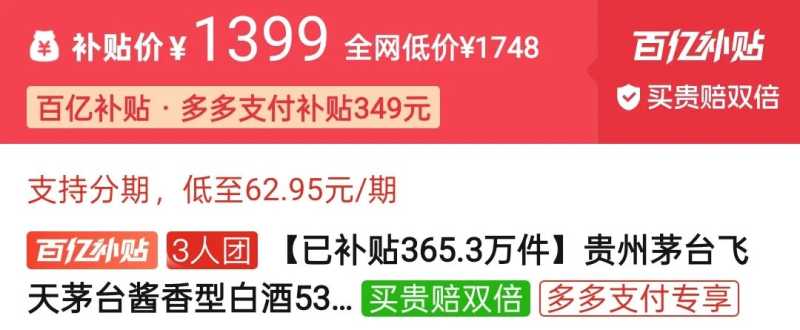 近期,拼多多平台更以“1399元/瓶”的拼团价销售53度500ml飞天茅台,引发市场热议。