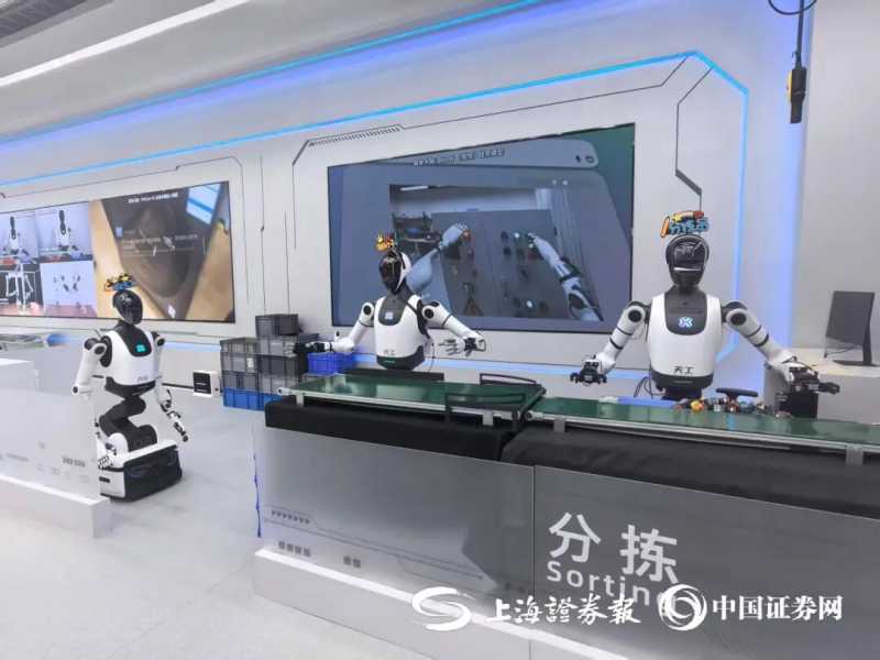 “我的另外三位好兄弟组成的‘打工天团’,马上要为大家带来一场由我们‘慧思开物’整体调度的协同作业展示!”上海证券报记者在展厅现场注意到,天工2.0话音刚落,另一边的人形机器人天轶开始进行物品放置、扫描入库、封盒到贴标签的一整套流程操作。