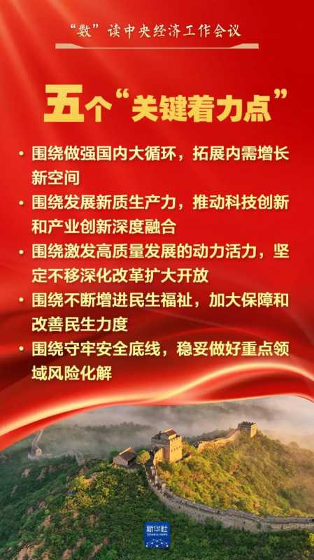 会议确定了明年经济八项重点任务,其中“坚持内需主导,建设强大国内市场”被置于首位。