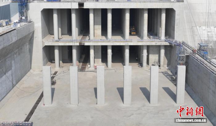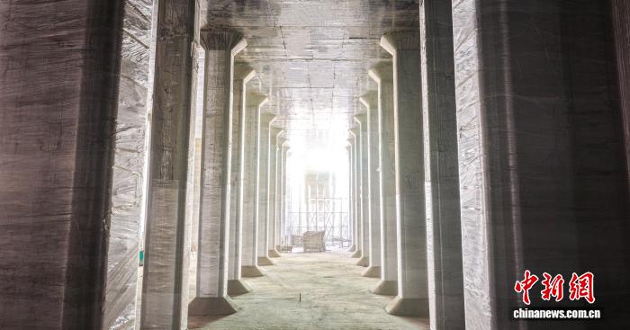 图为千根支撑柱托举起省水池结构。平陆运河集团供图