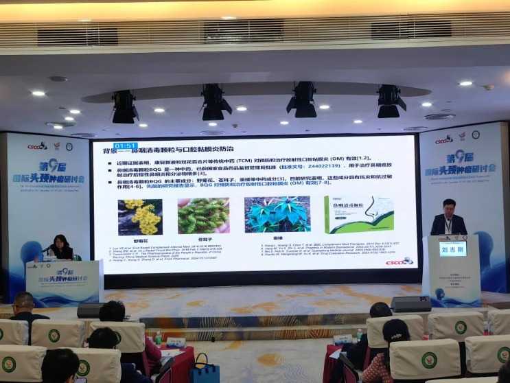本次研讨会的学术环节也为产学研成果提供了有力印证。在专题报告中,东莞人民医院刘志刚教授以“鼻咽癌放疗并发症治疗新进展”为题,重点分享了“鼻咽清毒颗粒与鼻咽癌放射性黏膜炎损伤防治”的相关研究。他特别提到,《鼻咽清毒颗粒在减轻鼻咽癌放疗急性鼻腔及口腔损伤的应用》的临床研究成果,已于今年在美国临床肿瘤学会(ASCO)年会上发表。该研究成果表明,广药集团旗下产品“白云山鼻咽清毒颗粒”能显著改善鼻咽癌放疗患者的中重度鼻腔分泌物症状,有效降低严重口腔黏膜炎发生率,并对缓解咽痛、咽干灼痛等症状具有明显效果,且安全性良好。这一高质量临床证据的发布,为中药在减轻放疗副反应、提升患者生活质量方面提供了新的有力支持,也展现了产学研合作结出的坚实果实。