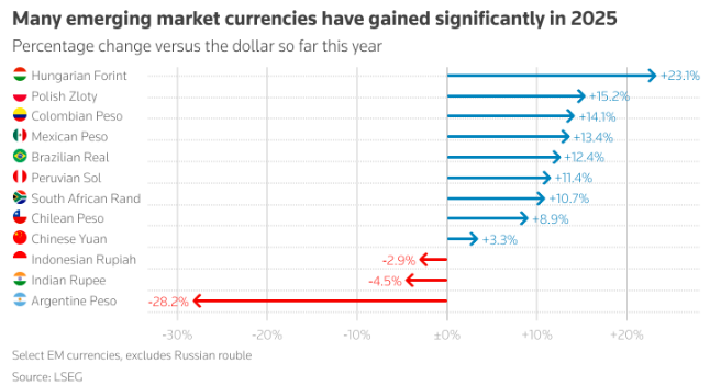 随着美元周期的转变和全球交易员对新兴市场资产的重新评估,新兴市场货币如匈牙利福林等在今年表现尤为亮眼。本文探讨了美元弱势对新兴市场货币的积极影响以及未来的投资前景。