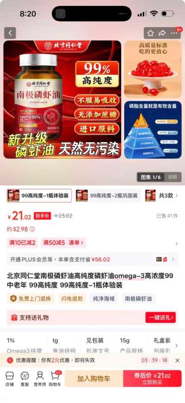 上海消保委称“同仁堂”磷虾油产品涉嫌虚假标注