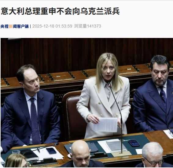 据央视新闻,当地时间12月17日,意大利总理梅洛尼在议会再次重申,即使在组建欧洲多国部队的情况下,意大利也不会向乌克兰派兵。