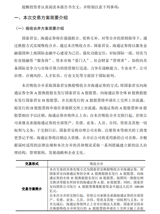 此次合并,国泰君安将通过向海通证券全体股东发行A股、H股的方式,换股吸收合并海通证券,并募集配套资金。其中,国泰君安的A股换股价格为13.83元/股,海通证券的A股换股价格为8.57元/股,换股比例为1:0.62。交易完成需经过股东大会审议、监管审批等多项程序,目前存在不确定性。