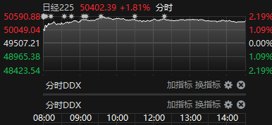 12月22日,日本和韩国股市收盘均上涨。日经225指数上涨1.81%,报50402.39点;韩国综合指数上涨2.12%,报4105.90点。