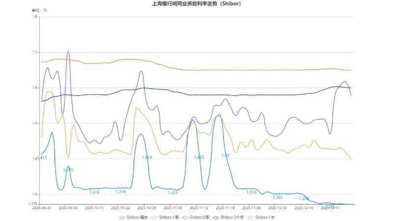上海银行间同业拆放利率(Shibor)隔夜品种持平,7天和14天品种下跌。具体来看,隔夜Shibor持平于1.2720%;7天Shibor下跌1.80BP,报1.3990%;14天Shibor下跌3.90BP,报1.5770%。