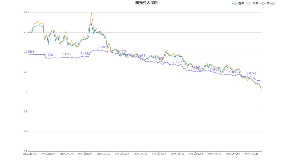 新华财经北京12月25日电(王姝睿)12月以来,人民币持续走强。25日,离岸人民币兑美元日内升破7.0关口,为2024年9月以来首次;在岸人民币兑美元也逼近7.0,近几个交易日连续上涨。