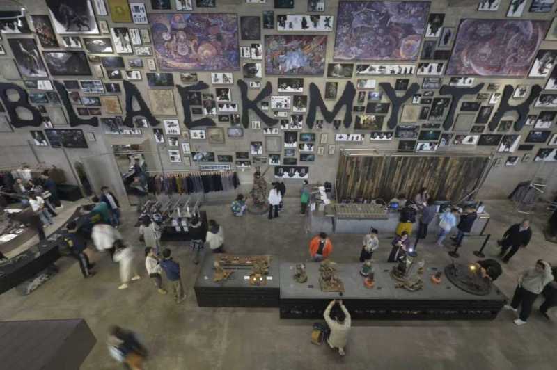 记者前去探访看到,除了琳琅满目的周边产品外,店内还有各种展出性质的雕塑、模型,“展”与“售”相得益彰。