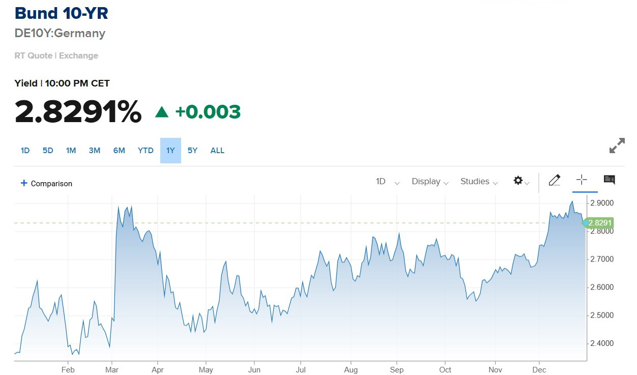 欧元区债券市场年内被财政阴云笼罩。尽管欧元区通胀已回落至目标附近,经济接近停滞,但成员国庞大的债务存量和高企的赤字率,迫使市场要求更高的风险补偿。
