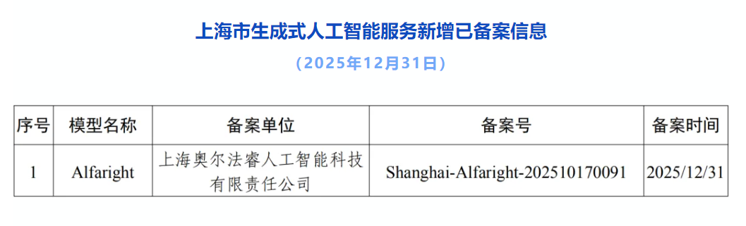 截至12月31日,上海市新增1款已完成备案的生成式人工智能服务,累计完成备案138款。