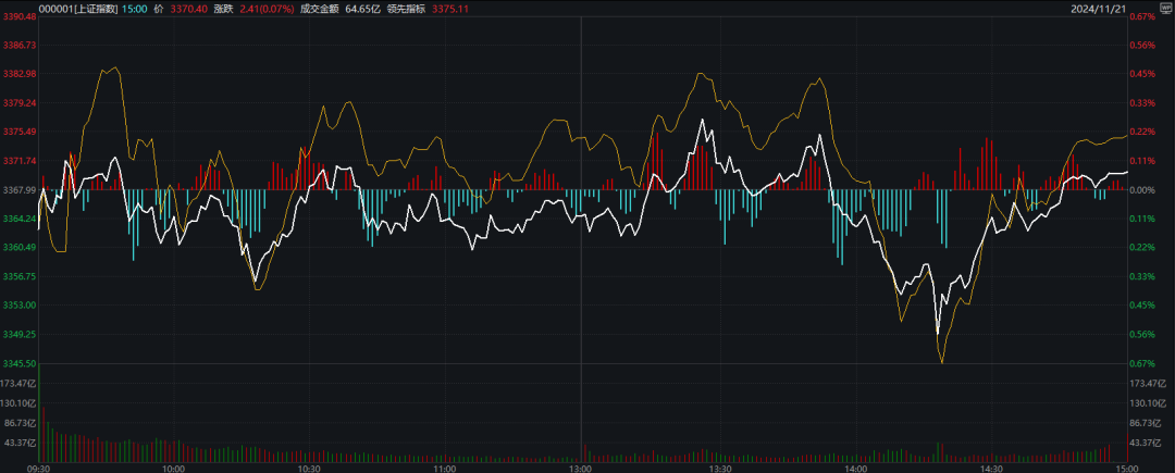 11月21日,A股市场呈现窄幅震荡格局,三大指数在波动中各有表现,均连续三日收阳。截至收盘,沪指微涨0.07%,深成指微跌0.07%,创业板指则下跌0.09%。