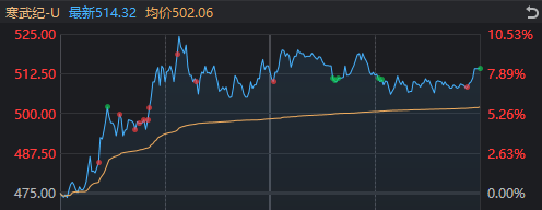 科技线方面,寒武纪盘中创历史新高,最高涨超10%,收盘仍涨超8%。半导体板块在英伟达盘后下跌的影响下低开高走,午后随大盘回落,收盘微涨。