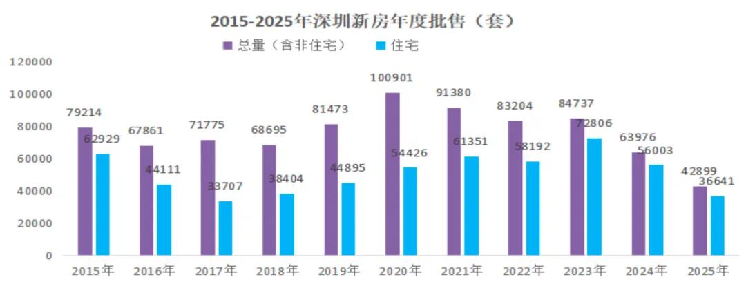 据深圳贝壳研究院统计,2025年深圳住宅供应量为36641套,同比下降34.6%。分区域来看,龙岗、宝安、龙华为住宅供应主力区域,三个区域占比达到六成。