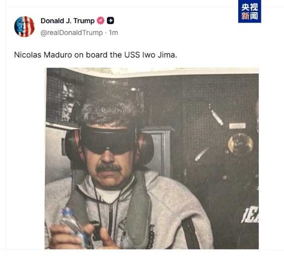 ▲ 1月3日,特朗普在其社交平台发布一张马杜罗在“硫磺岛”号军舰上的照片
