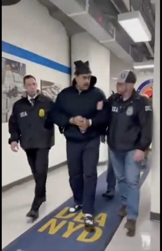 据央视新闻,当地时间1月3日,美国白宫官方账号发布了一段视频,记录了疑似是马杜罗被押送抵达美国缉毒署(DEA)办公室的画面。视频显示,马杜罗身穿黑色连帽运动衫,走在一条铺着蓝色地毯的走廊里,地毯上标有“DEA NYD”字样。视频中,马杜罗边走边向周围人说“晚安”、“新年快乐”。