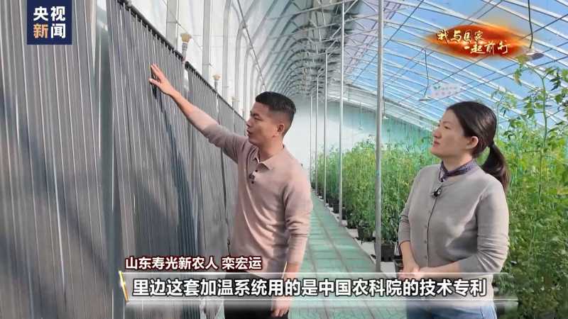 山东寿光新农人栾宏运:这个棚叫双层集热板大棚,里边这套加温系统用的是中国农科院的技术专利。现在有太阳,一摸很烫手,因为这上边是一层石墨烯的纳米涂层,吸热很快。在零下35℃的地方,我们棚里照样能有10℃以上的高温。