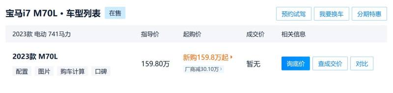 金额超高:宝马i7狂降30万元