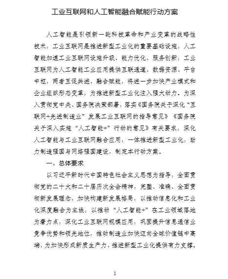 工业互联网与人工智能融合赋能行动方案