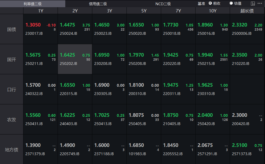 二级存单方面,3M国股成交在154%附近,较前一交易日上行4bp, 1Y国股成交在 1.6275%位置,较前一交易日上行