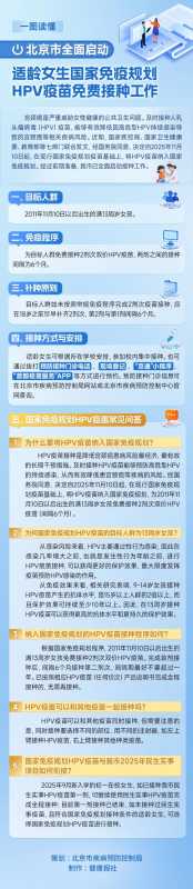 北京市疾控局介绍,北京已全面启动适龄女生国家免疫规划HPV疫苗免费接种工作。目标人群为2011年11月10日以后出生的满13周岁女孩,可免费接种2剂次双价HPV疫苗,间隔6个月。