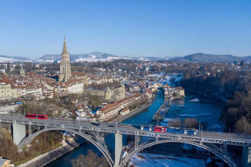 这是2024年1月20日在瑞士伯尔尼拍摄的城市风光(无人机照片)。新华社记者孟鼎博摄