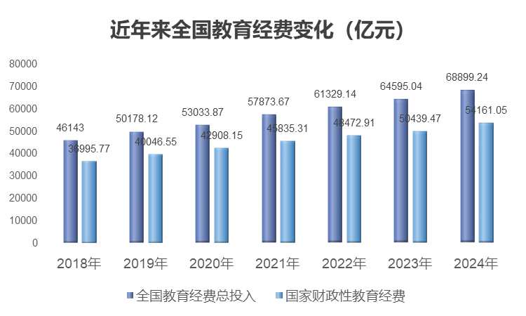 2024年全国教育经费总投入达68899.24亿元