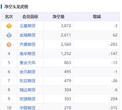 1月27日,上期所黄金期货多、空前5名净持仓量为9.44万手,而1月28日小幅下跌至9.28万手,1月29日大幅下跌至8.18万手。