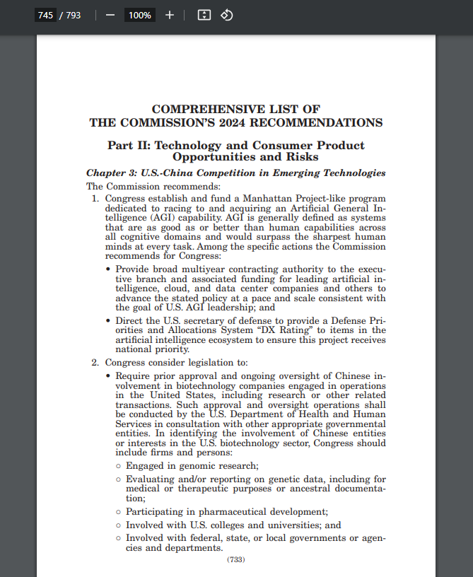 美国国会美中经济与安全审查委员会提议资助开发高度智能化AI系统,类似“曼哈顿计划”,建议公私合作推进通用人工智能发展,以应对中美技术竞争。