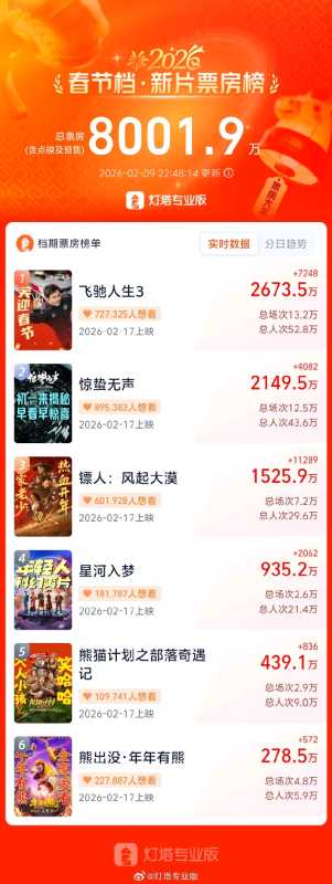 据灯塔专业版,2026春节档新片预售总票房已突破8000万,标志着今年春节档新片市场持续升温。