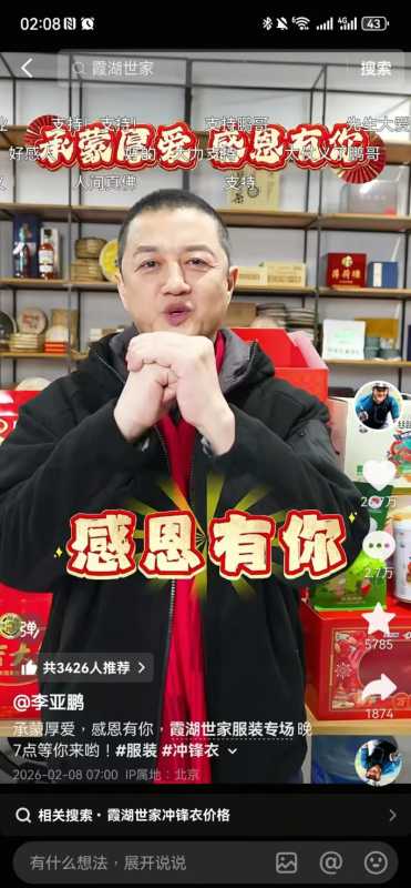 1月23日,李亚鹏在个人抖音账号开启普洱茶带货直播,数十万网友涌入直播间围观,网友纷纷下单。24日,李亚鹏合作的云南普洱茶厂有限公司紧急发布公告,宣布暂停近期的直播安排,集中精力处理订单。