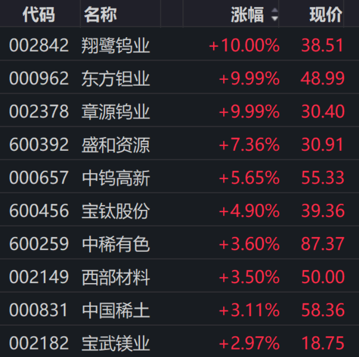 近日A股市场小金属板块涨幅亮眼。小金属指数今日大涨2.72%,多只小金属股全年业绩向好。此外, 钨价持续走高, 全球关键矿产资源因“安全溢价”上行, 看好铜、钨等关键矿产资源价格上涨趋势。