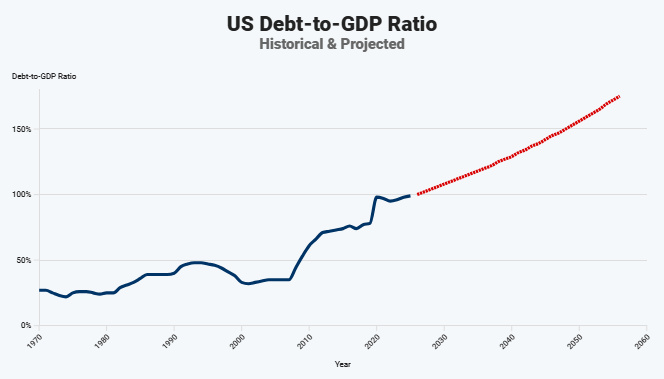 不断扩大的预算赤字将进一步推高国家债务规模——联邦债务总额预计将从2026财年末的39.4万亿美元攀升至2036年的63万亿美元。