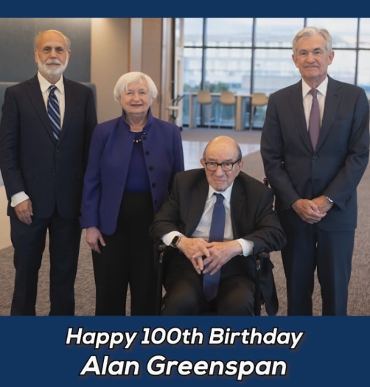 感谢您带来一个世纪的经济智慧与领导力。美联储所有同僚都向您致以最诚挚的祝福。生日快乐!