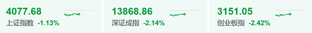 A股市场跌幅有所收窄。截至午间收盘,上证指数跌1.13%,深证成指跌2.14%,创业板指跌2.42%。