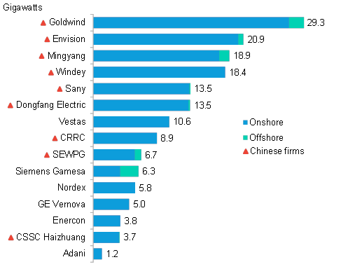 中企在全球风电市场中的地位愈发突出。