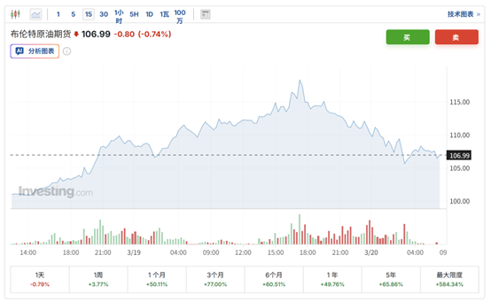 随着中东关键能源基础设施接连遭袭加剧了人们对能源供应中断的担忧,周四,全球基准布伦特原油期货主力合约一度大涨10%,接近119美元/桶。