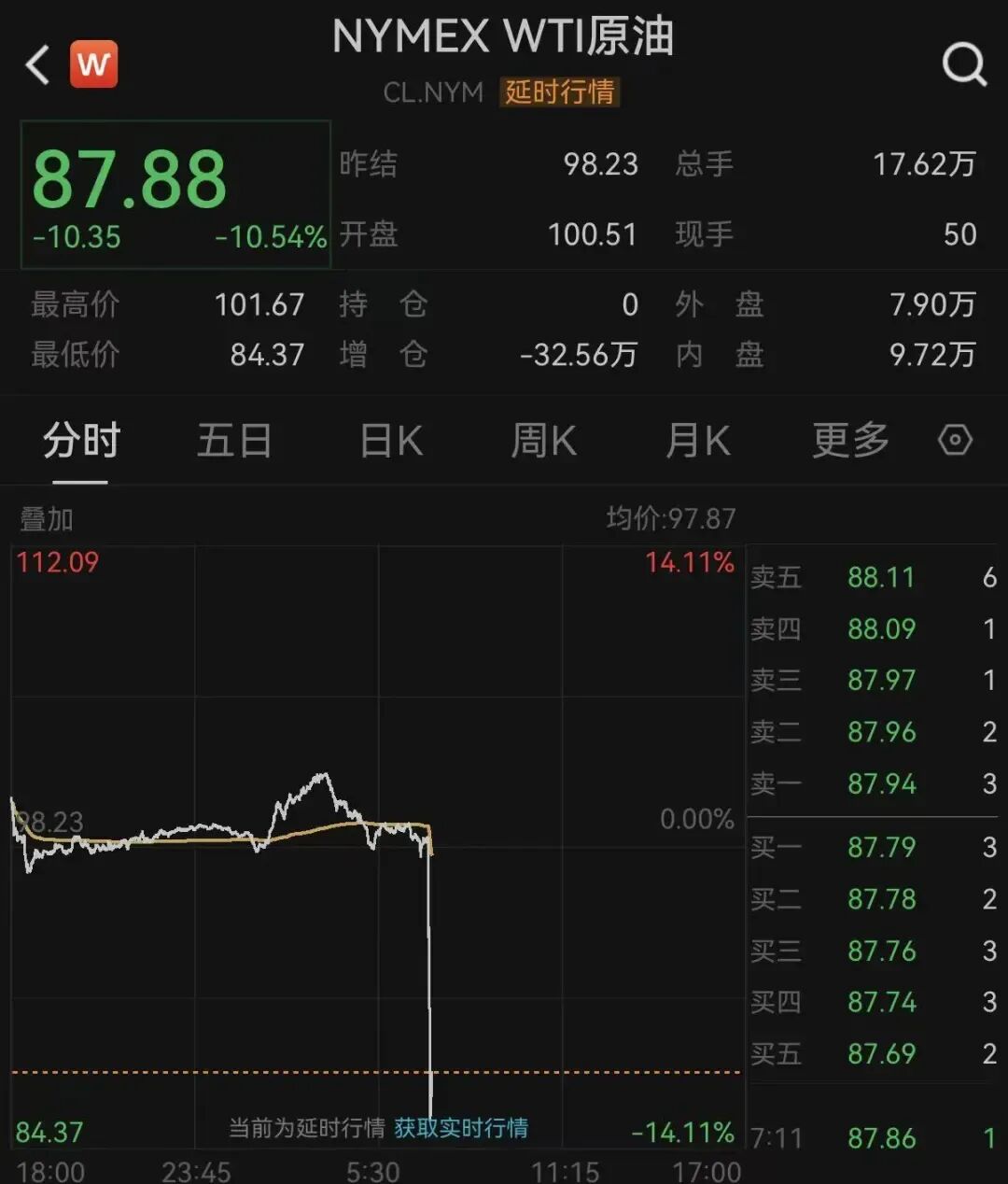 据报道,周一纽约时间上午6时49分至6时50分,约6200份布伦特原油和西得克萨斯中质原油(WTI)期货合约在短短1分钟内易手,名义价值约5.8亿美元。同一时间,标普500迷你期货交易量突然出现飙升,打破了此前盘前交易的平淡局面。