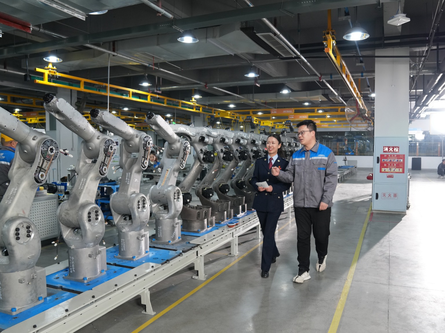 税务干部走进成都卡诺普机器人技术股份有限公司生产线了解企业生产经营详情,听取涉税需求并同步开展政策宣传辅导。
