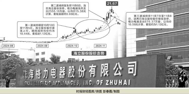 格力电器的减持操作分为三波,第一波减持期股价震荡上行,减持均价约为10.44元,估算减持金额约为1.12亿元。第二波减持发生在11月6日,当日海立股份涨停,格力电器卖出2555.16万股,套现约3.93亿元。第三波减持在11月7日至8日,继续涨停的股价使格力电器通过卖出676.37万股套现约1.12亿元。综合计算,格力电器此轮减持海立股份累计套现超过6亿元。